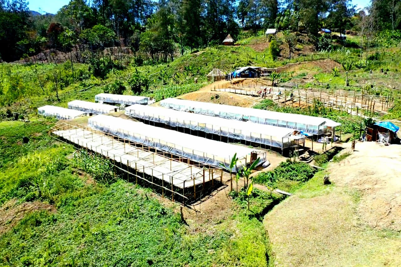 Kinmuga coffees come from a network of smallholders in the southern Waghi Valley, an area known as the “food bowl of PNG” for its fertile volcanic soil and long agricultural history. Nestled at 1,600 meters above sea level and surrounded by an extinct volcano, the valley benefits from nutrient-rich deposits carried by the Wara Tuman River. Smallholder farmers deliver ripe cherries to the Kindeng wet mill for pulping, fermentation, and processing into parchment before being transported to the Kagamuga dry mill in Hagen. Since 2018, Kindeng has utilized an environmentally friendly wastewater digester, ensuring sustainable coffee production. The combination of high-altitude tropical climate, nutrient-rich soil, and careful processing contributes to the distinctive quality of Kinmuga coffees.